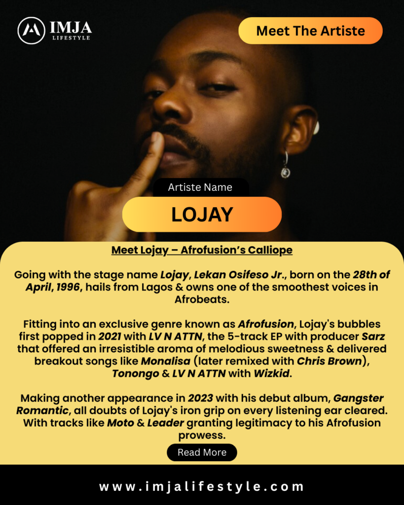 Going with the stage name Lojay, Lekan Osifeso Jr., born on the 28th of April, 1996, hails from Lagos and owns one of the smoothest voices in Afrobeats.